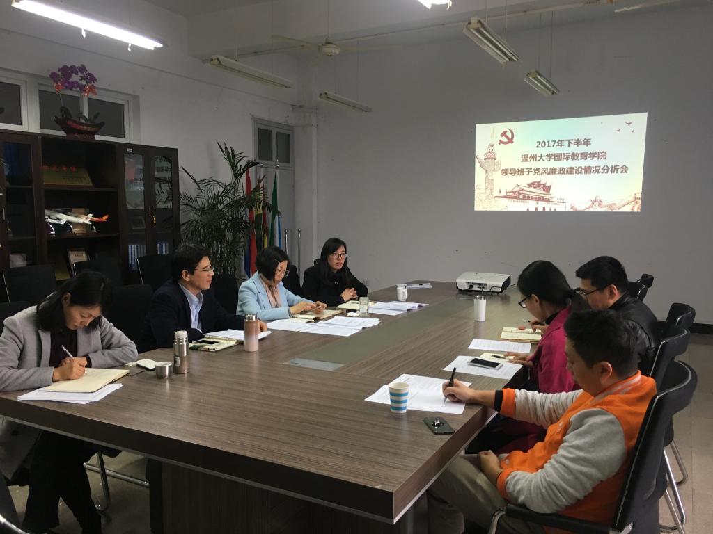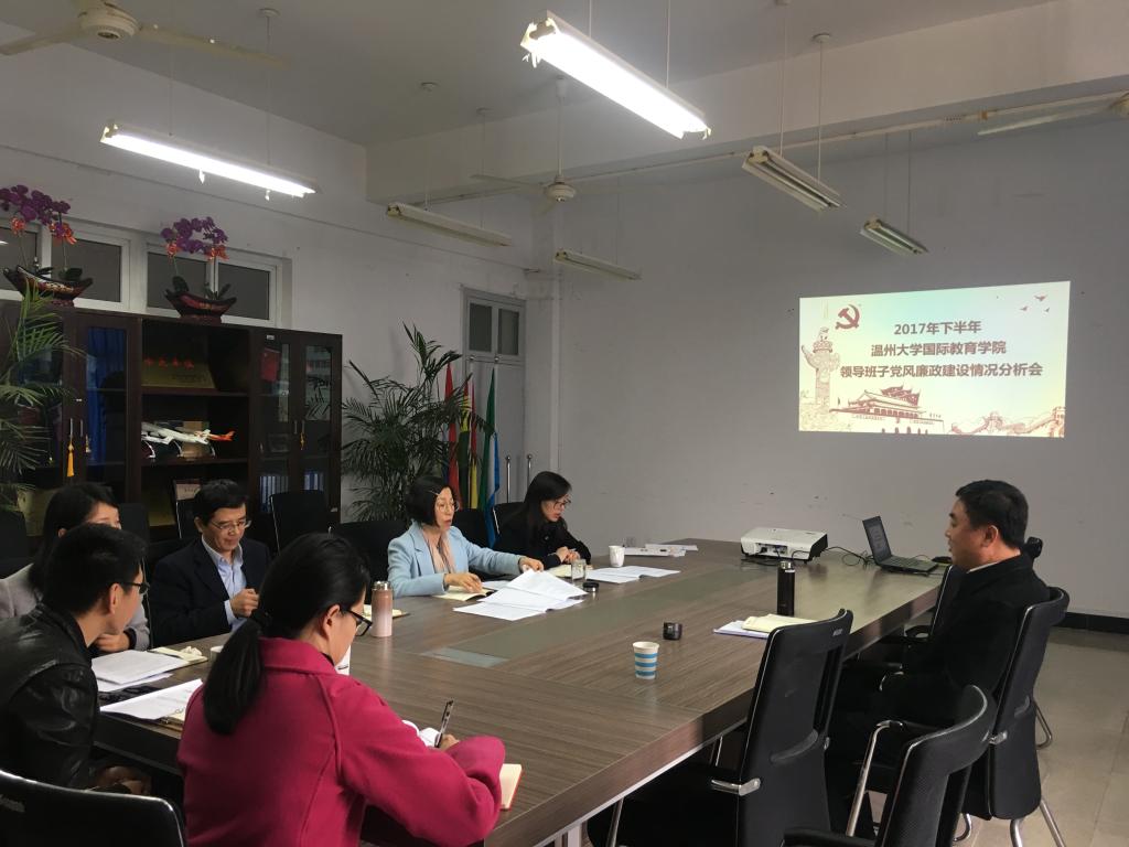 关于在二级单位实行领导班子党风廉政建设情况分析会制度的通知》(温大党委〔2016〕50号)文件的精神,分析了这一年学院党风廉政建设情况和党员干部一岗双责、民主集中制、作风建设情况。学院领导班子成员结合自身工作,认真研究,排查了党风廉政建设工作风险点,针对存在的不足和问题,提出相应的整改措施和建议。