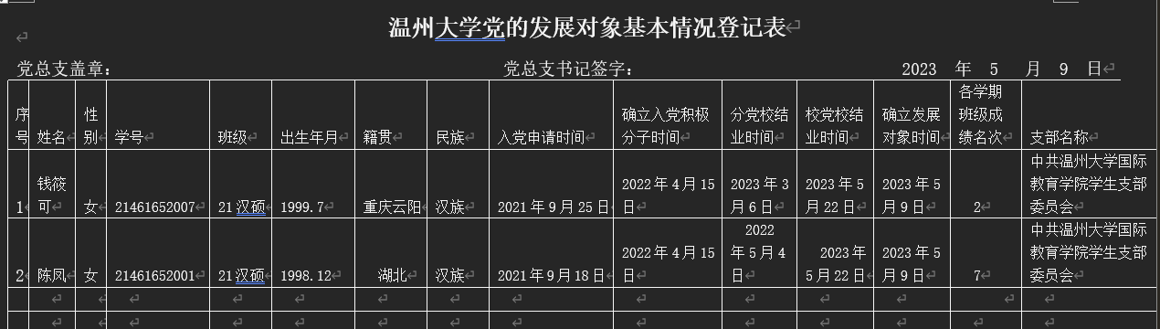 色情导航 学生党支部在听取培养联系人、党内外群众意见的基础上,经支部大会讨论同意,并经色情导航 党总支审议通过,报上级党委备案,拟确立钱筱可、陈凤同志为发展对象,如对该同志的确立问题有异议,可在公示期内向学院反映。公示期为2023年5月9日至5月15日。