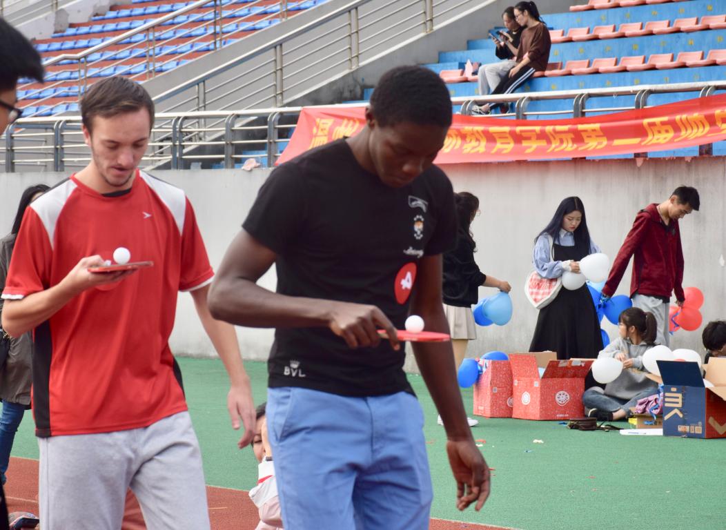 此次趣味运动会项目内容丰富,其中赶小猪、海底捞月和掌上明珠三个闯关计时项目最受师生欢迎。选手们个个争分夺秒、认真投入,期望自己在更短的时间战胜竞争对手,赢得比赛胜利。老师们也纷纷加入,迅速找好自己的队友参加比赛。运动会还特别设置了附加闯关赛——脚底生花,两两选手组合参赛,排名靠前的队伍可获得时间奖励,为自己获胜增加砝码。国际学生与中国学生团结协作,奋力拼搏,配合队友调整好自己的速度,尽量减少比赛时间以获得优胜。