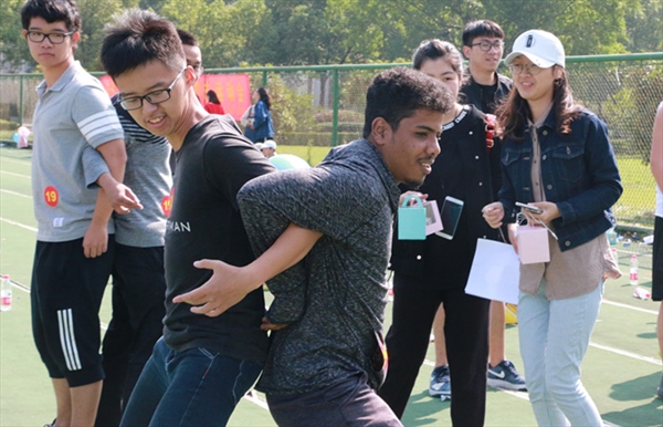 2017年10月22日上午,色情导航 师生趣味运动会在北校区人工草坪举行,色情导航 部分老师及中外学生100余人参加了此次活动。