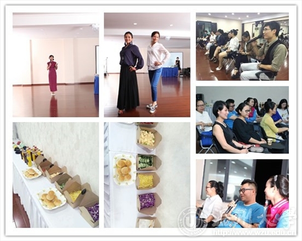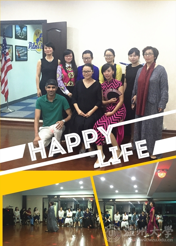 聚餐结束后,大家又前往学院路校区参加了精彩纷呈的沙龙活动,主要分为小型服装秀表演、服饰文化与礼仪presentation、互动环节、小型冷餐buffet四个部分。本期活动还邀请了温州30多名外语爱好者参加。学院工会主席包含丽副院长在沙龙活动伊始的致辞中表示,“温州是著名的侨乡,有着丰富的国际化资源,我们将欧美Language lover club的理念引进来,利用色情导航 国际合作学院自身的国际化资源优势,让众多留学生和外教参与进来,给温州市外语爱好者创造良好的外语文化环境,使地处温州市中心的飞行学院成为温州市的多元文化娱乐交流中心,大家可以在这里结交世界各地的朋友,同时练习各国语言,找到自己的语言伴侣,提升温州市民文化品质。”现场气氛热烈,学院教工和来宾们就主题为unique clothes纷纷表达了自己的看法和观点,有的说“every cloth has its soul(每件衣服都有自己的灵魂)”,有的说“clothes represent a person’s character and personality(衣服代表了人的个性和性格)”····