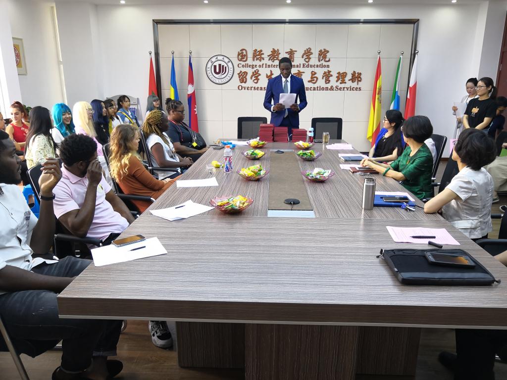 院长叶苗、党总支书记林爱菊、党总支副书记张雪萍、副院长熊勇、副院长吴之欧,相关科室负责人、辅导员、语言生和交换生参加会议。会议由汉语国际推广教研室主任徐丽丽老师主持。