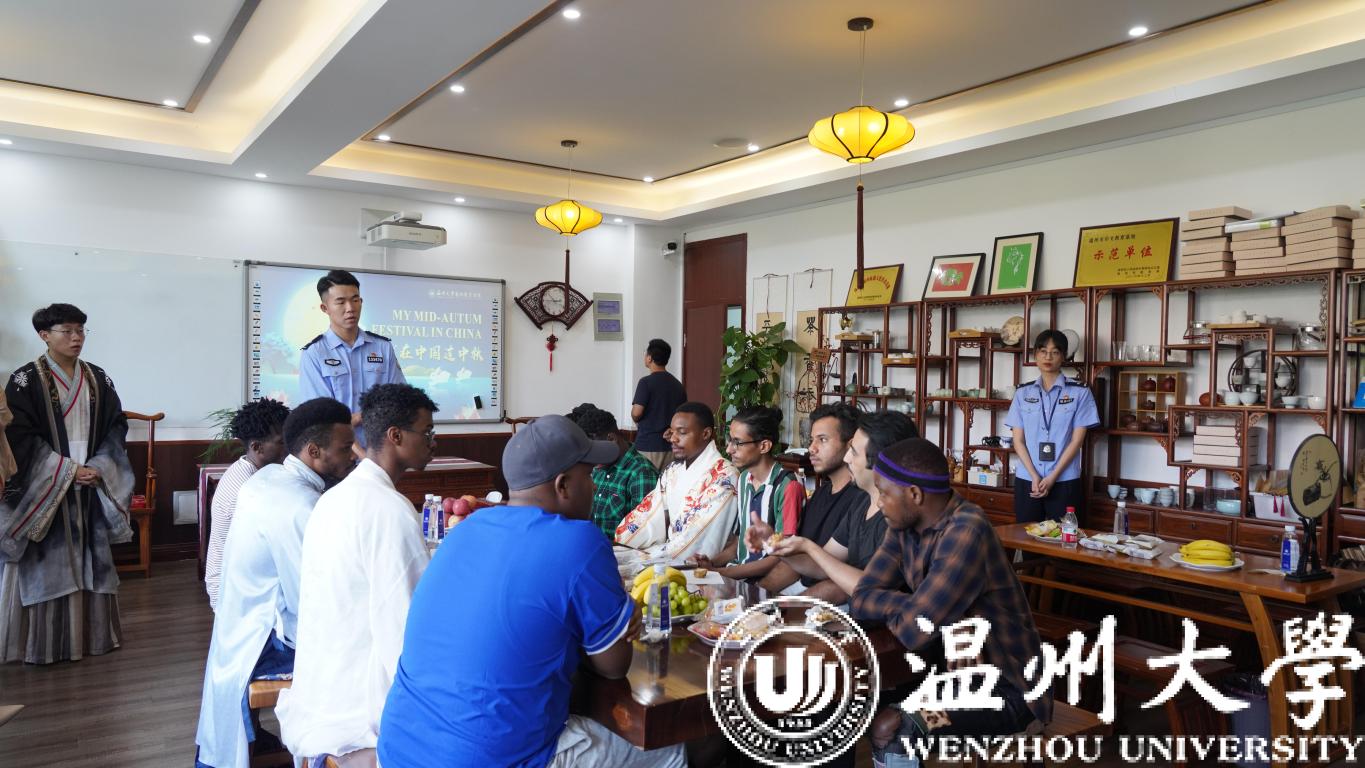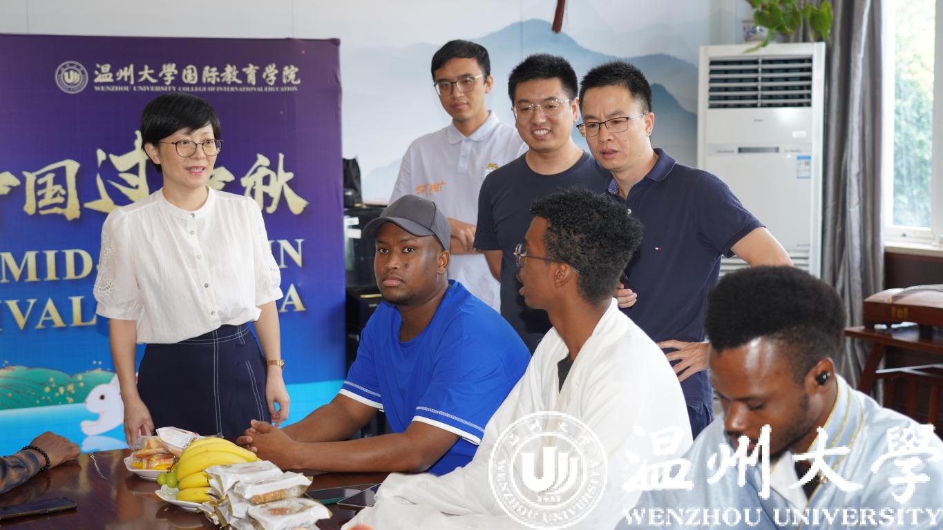 中外师生于9月9日下午齐聚北校区3号楼212教室举行“我在中国过中秋”活动,学院党总支书记林爱菊、副书记方建晓、瓯海公安局出入境管理大队教导员徐毅一行参加了此次活动。