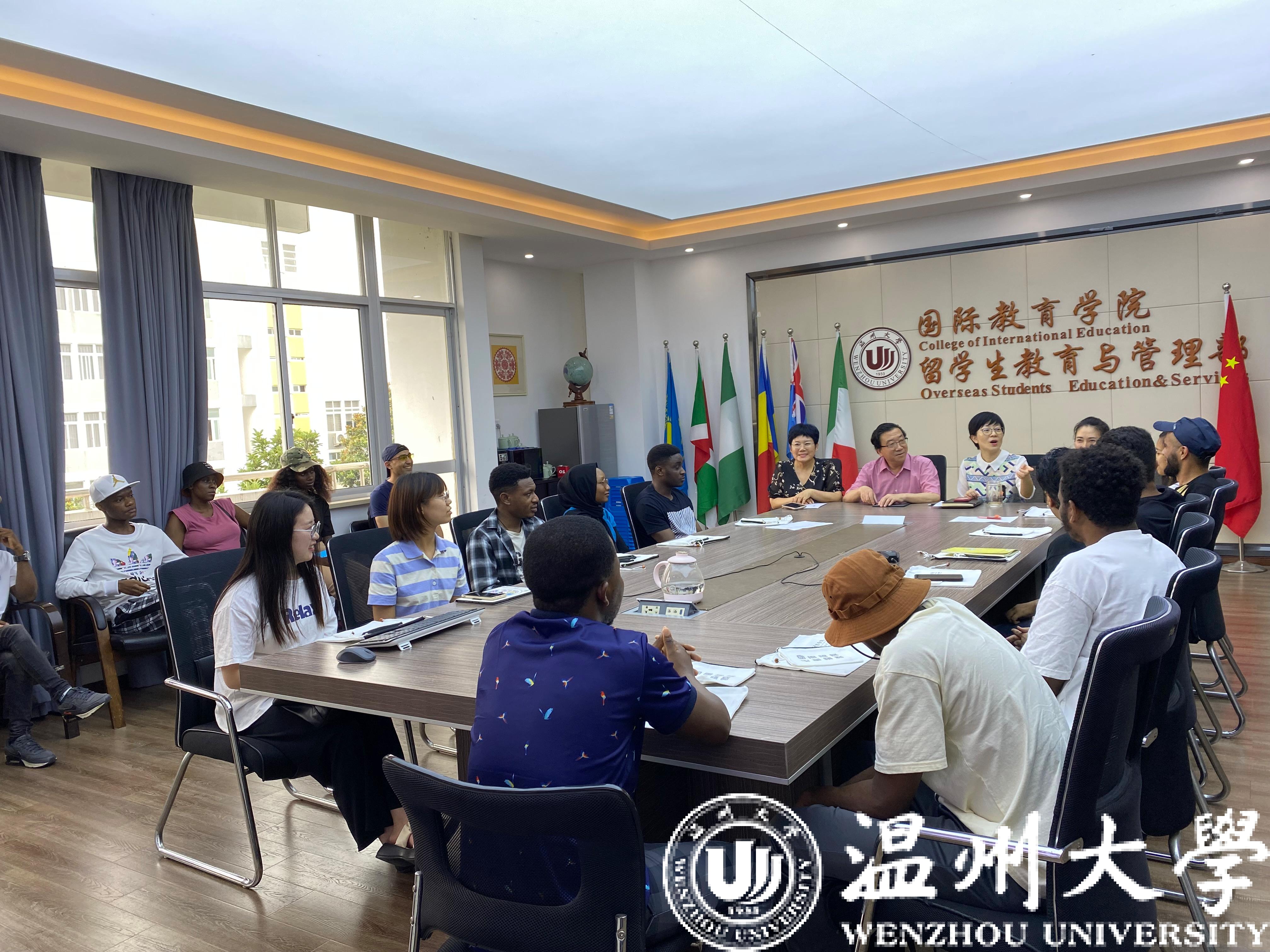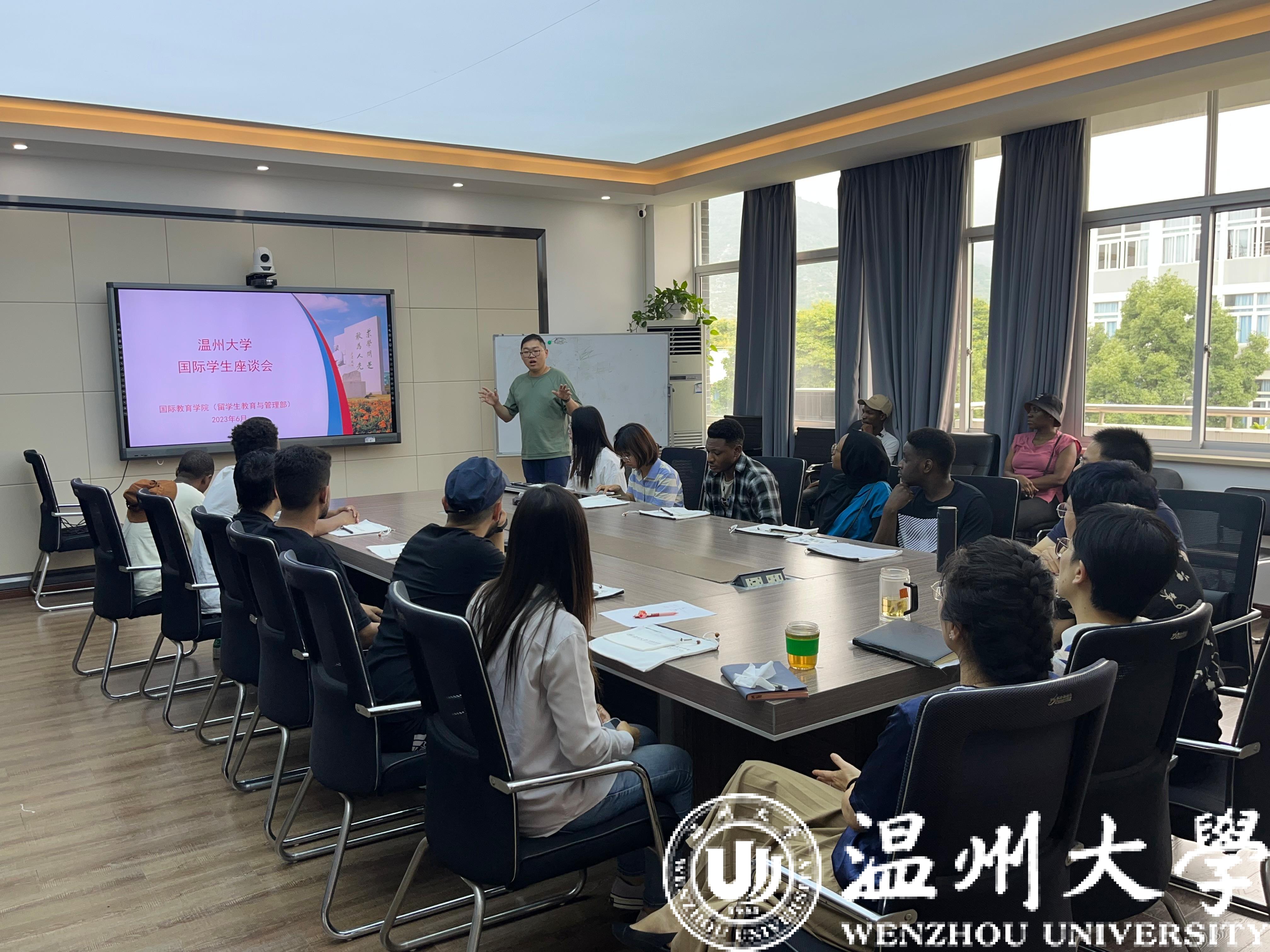 组织汉语国际教育专业的中国学生代表及来自土库曼斯坦、马来西亚、津巴布韦等国家的20名留学生代表参加座谈会,探讨中外学生关于学校教育教学及管理服务的意见建议,副校长蔡曙光、学院领导班子和全体学工办辅导员参加。