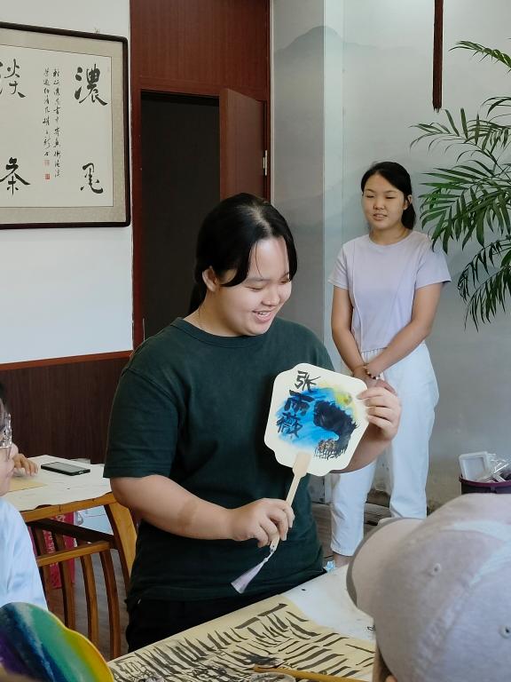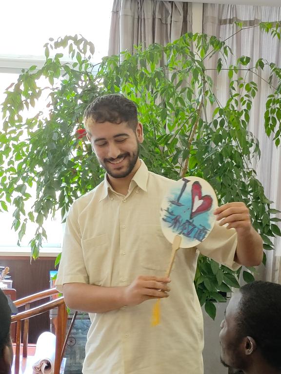 学生进行书法学习活动后,方书记与暑期留校留学生们亲切交谈,了解他们在异国他乡的生活和学习情况之后,向留学生传达了学校对他们的关心和支持,并强调了要遵守中国法律法规、学校校纪校规,加强个人安全意识,安全用电用水,注意防暑降温,合理安排暑假学习和生活时间。课后一起进行了合影留念。