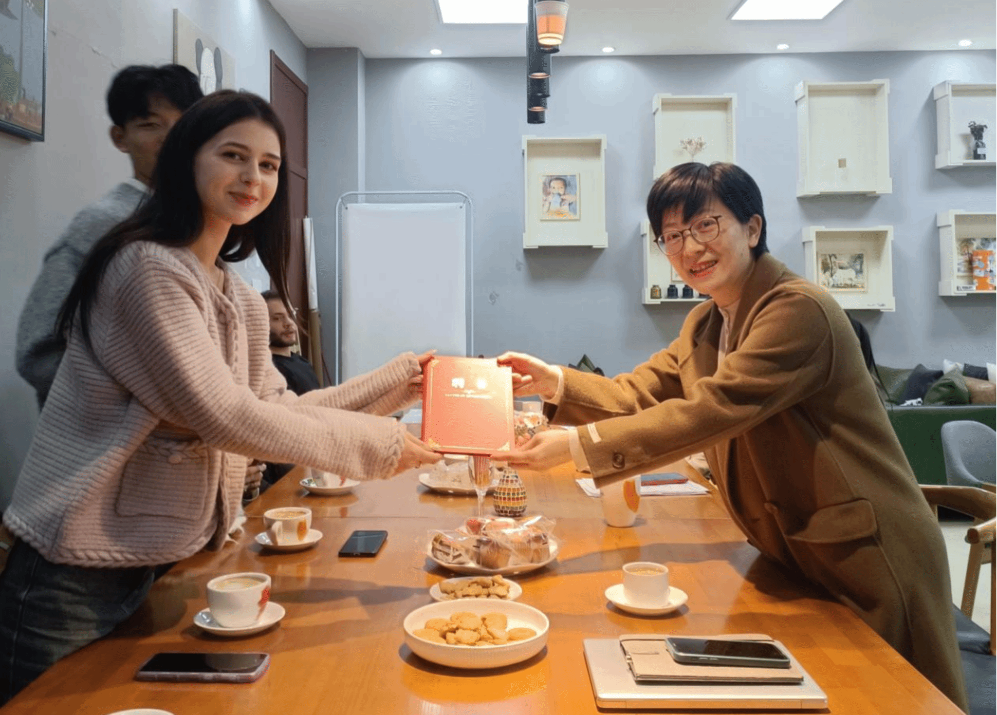 活动伊始,林爱菊书记及熊勇副院长首先对顺利完成学业的交换生们表示最热烈的祝贺,并充分肯定了交换生们在异国他乡的学习中所展现出的勇气、智慧和适应能力,以及为两所大学的交流与合作所做出的积极贡献!随后,林爱菊书记及熊勇副院长为参与本次合作项目的交换生们颁发了结业证书、校友联络员聘书以及学院为他们精心准备的结业礼物,希望同学们能够继续保持开放的心态,积极参与国际合作,为推动世界的发展做出贡献!
