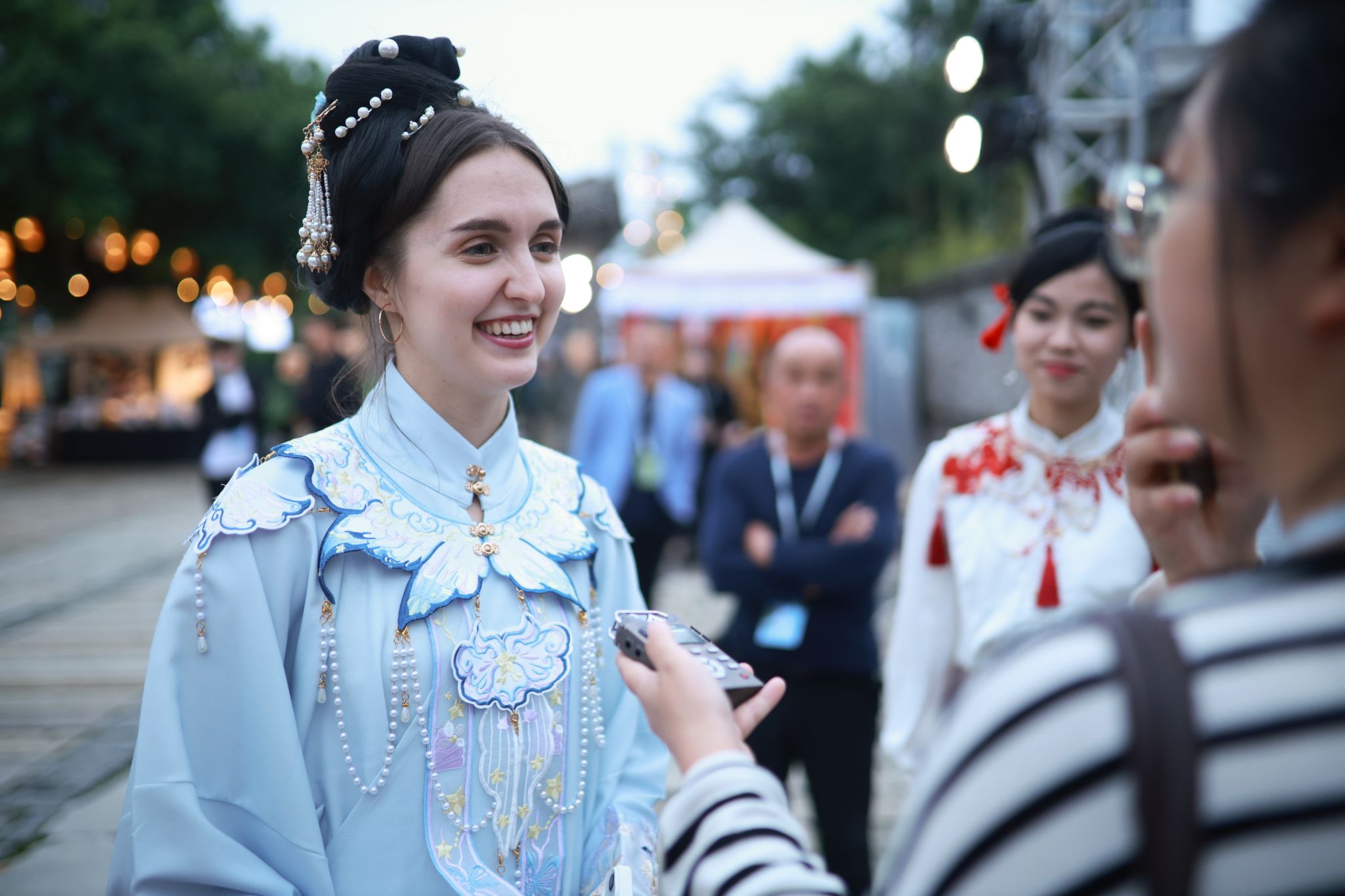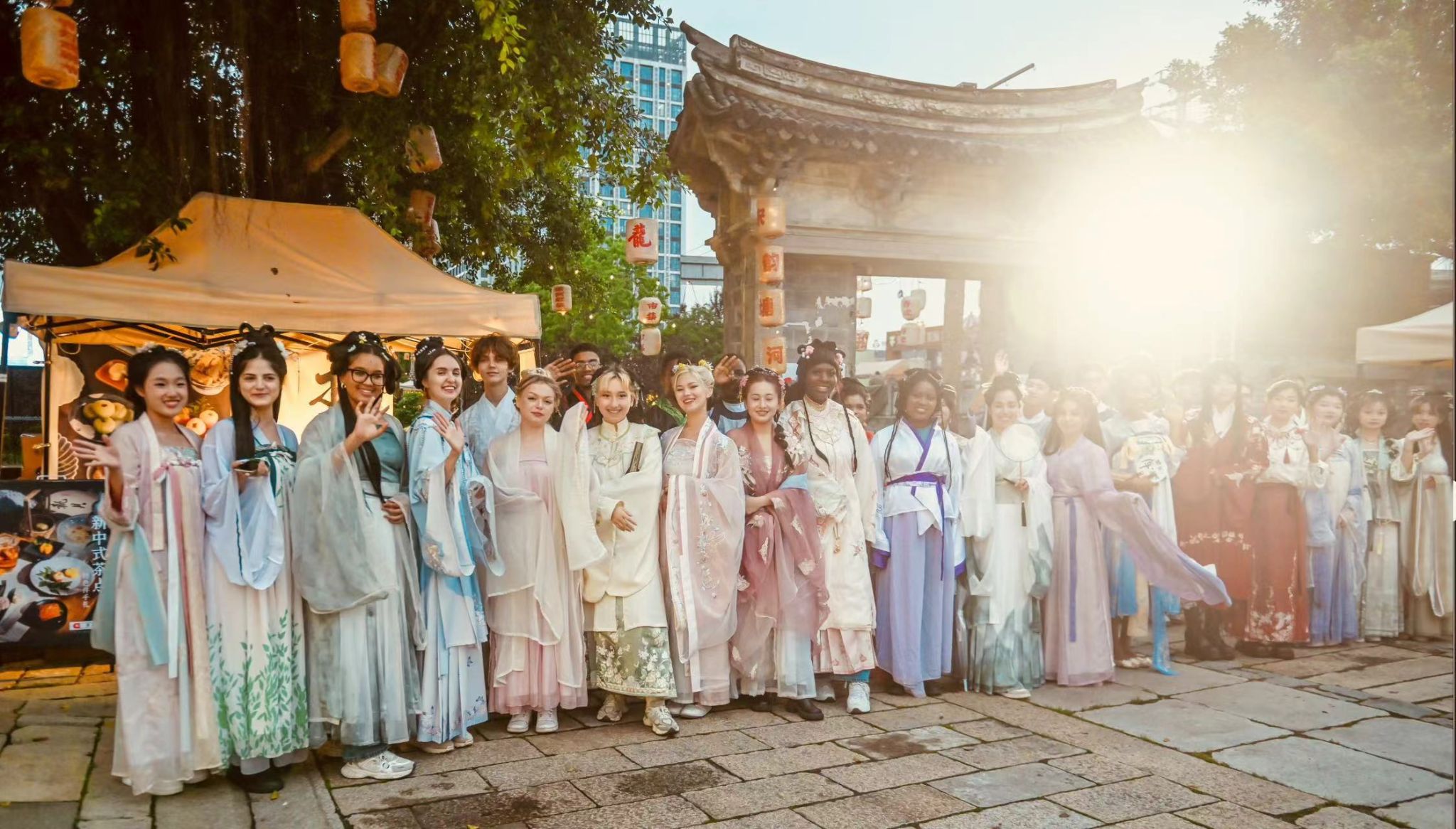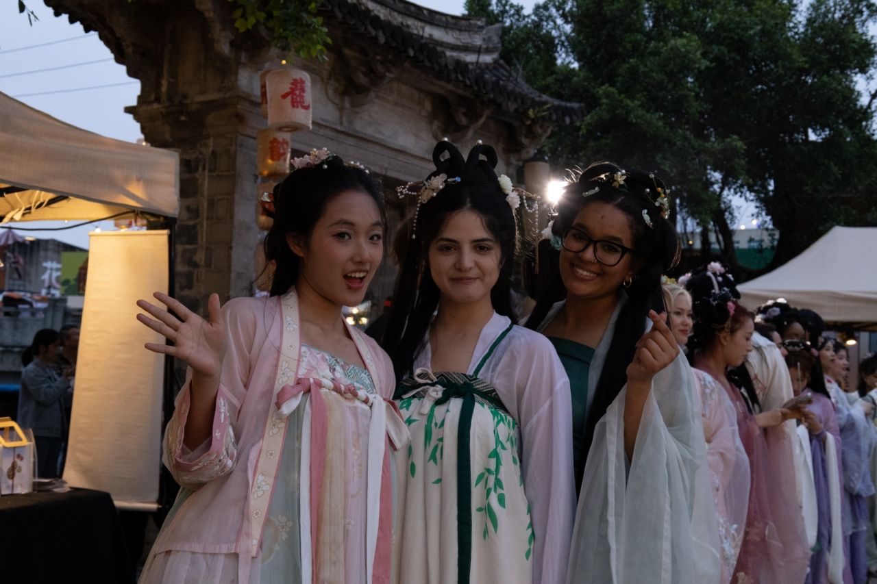 色情导航 留学生身穿汉服打卡青灯市集,感受中华传统美学魅力