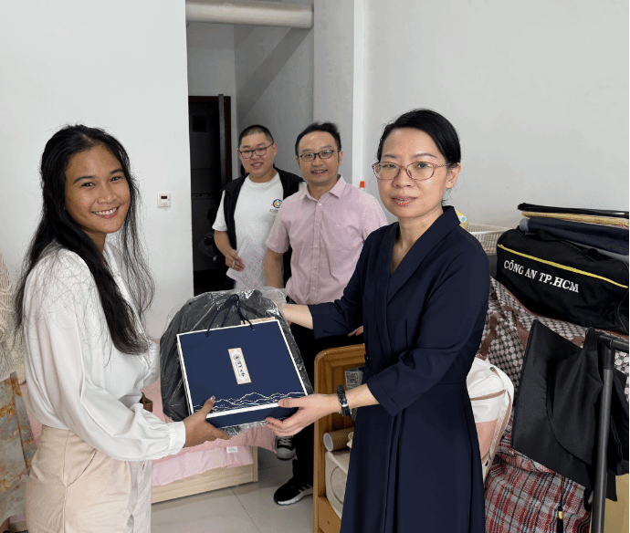 走访过程中,学院领导和老师们与留学生们进行亲切交谈,详细了解他们在华学习期间的收获与感悟,并询问他们毕业后的打算和未来的规划。学院领导们亲切地叮嘱留学生们要珍惜在中国的学习经历,回国后继续发挥所学,为增进中外友谊贡献力量,并积极鼓励大家在未来的道路上勇敢面对挑战,不断追求卓越,成为各自领域的佼佼者。在交流中,留学生们也纷纷表达了对中国、对温大的感激之情,并表示会永远铭记这段美好的经历,也希望有机会能回报学院的培养。此外,学院领导老师们也非常关心留学生们离校的准备情况,并提醒大家注意行程安排和物品整理,确保安全顺利离校。