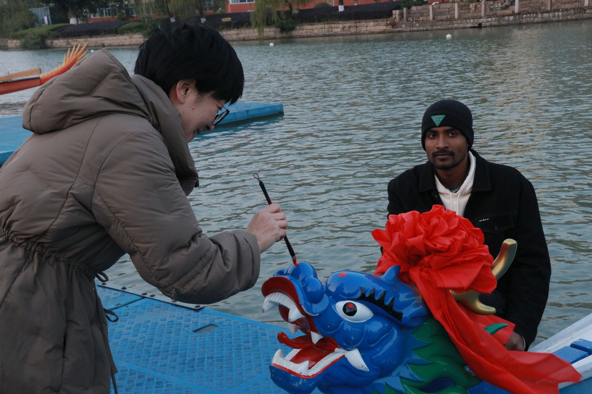 国际龙舟队为大家呈现了一场精彩的龙舟表演,队员们整齐划一的划桨动作,如蛟龙出水,气势磅礴。他们喊着响亮的口号,伴随着激昂的鼓点,在水面上疾驰而过,溅起的水花似是他们激情的绽放,充分展现了前期训练的成果与团队的高度默契,也让在场的师生们提前领略到了国际龙舟队的风采与实力。