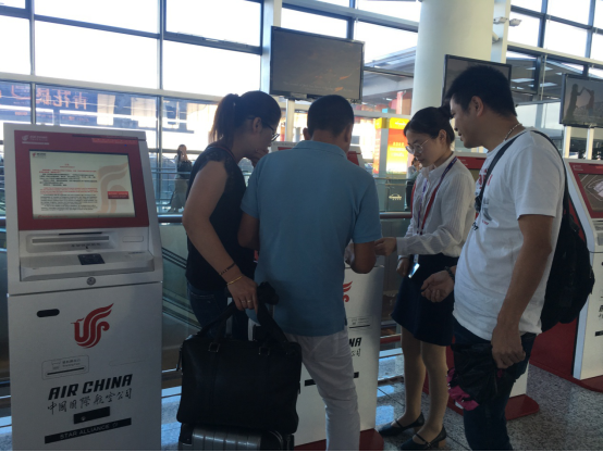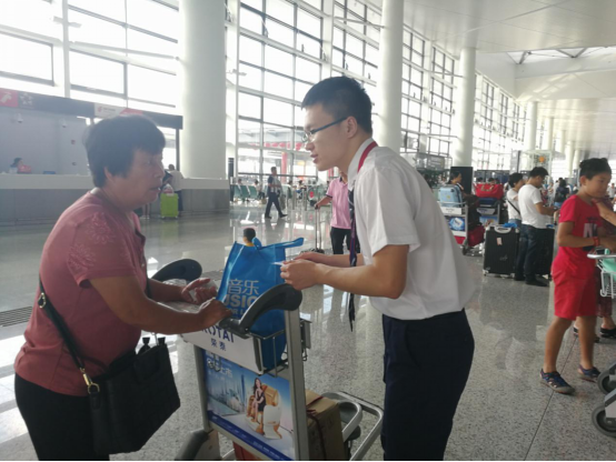 实习生袁青松则谈及了他实习中的工作心得:“在引导旅客去自助值机和柜台引导中,会遇到很多旅客问要去哪排队。最早的时候我们问他们是哪个航空公司和哪个航班号,然后再引导旅客去哪里。这其实时间成本有点高,而且很多旅客其实并不知道自己乘坐的飞机是哪个航空公司和哪个航班号,为了解决这个问题,我们就提前记住了当天的航班时间和目的地,之后直接问旅客飞机的起飞时间和目的地。不能解决的再核对购票的短信。接下来再面对一下子有大量旅客涌入的高峰时段,就可以游刃有余的处理了。引导工作使我快速且深刻地记住了不同航空公司的代码和航班号,还发现机场里不同航空公司的分布有规律。”