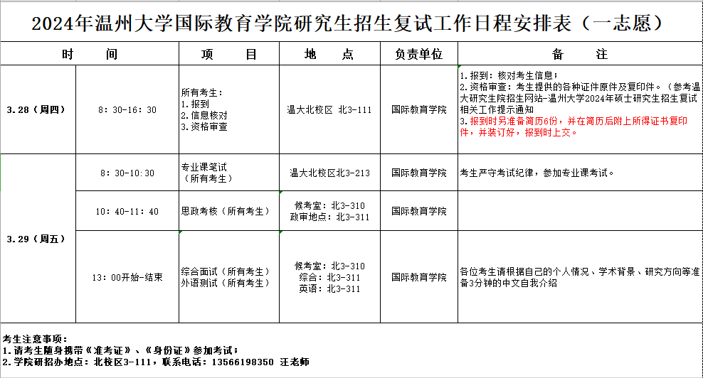 (4)外语听力及口语的测试环节,根据《温州⼤学研究⽣招⽣复试中外语听⼒及口语测试实施⽅案》,对每位考⽣单独进⾏听⼒及口语测试,当场给出测试成绩,考⽣最后得分为该测试小组所有考官给定成绩的平均分。外语听⼒口语测试满分10分,直接进入复试成绩。